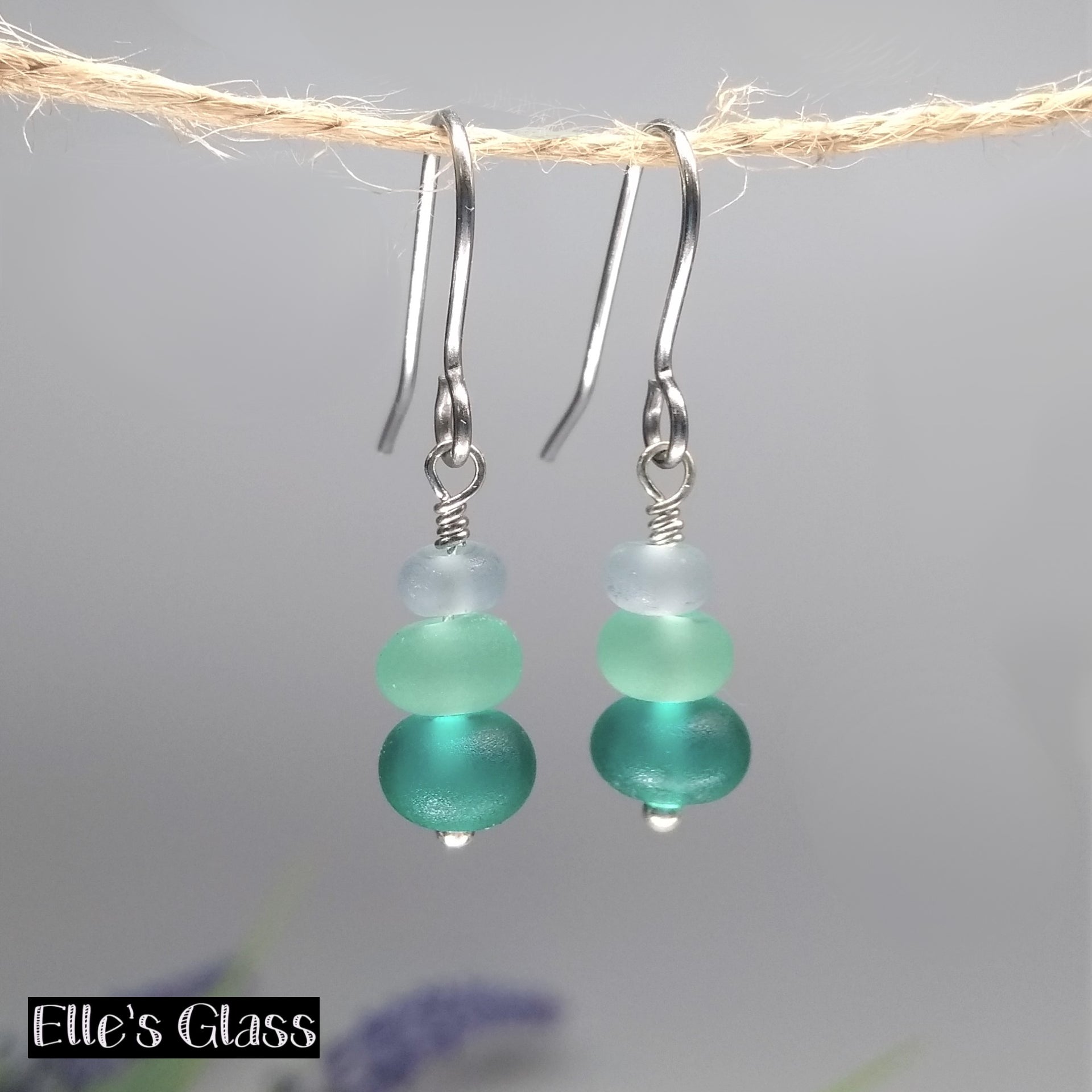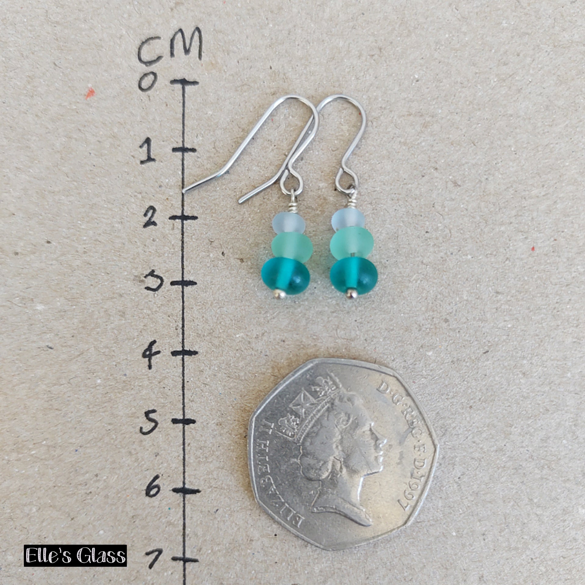 A pair of sea glass inspired bead earrings. These are handmade from glass with surgical steel hooks making them safe for anyone to wear (hypoallergenic). Super cute way to accessorise your outfit. Would make a great gift or to treat yourself.